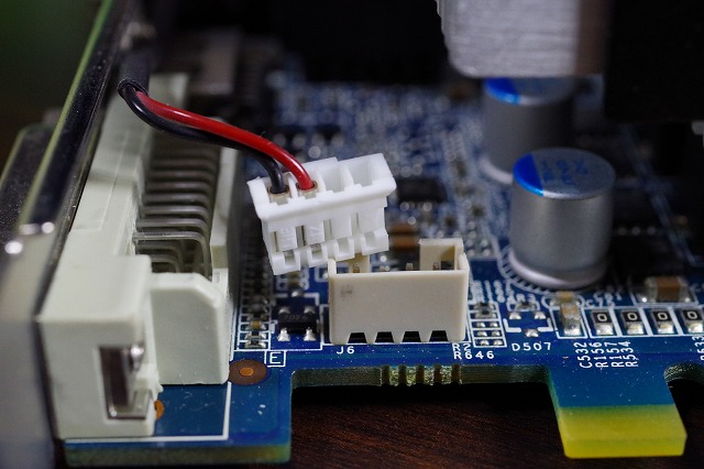 最初にファンに繋がる電源ケーブルと、VGA/DVI/HDMIの端子に繋がるケーブルを外します。